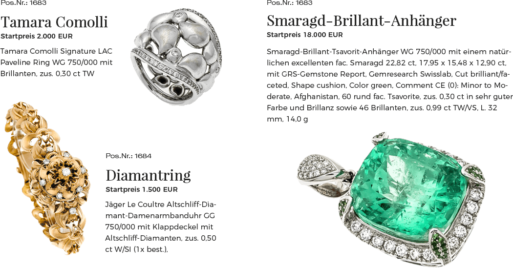 Sollte eines Ihrer eingelieferten Objekte bei der Auktion nicht verkauft werden, entstehen für Sie – anders als bei anderen Auktionshäusern – keine Kosten. Auch nicht für Katalogisierung, Fotos, Werbung sowie die Lagerung und Versicherung der Objekte bis zur Auktion.